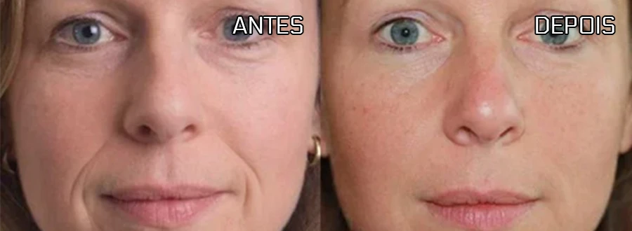 "Com 41 anos, achei que não tinha mais jeito. Estava com a autoestima lá embaixo. Comprei sem muita fé... MINHA NOSSA! Em 1 minuto meu rosto mudou completamente. As pessoas na rua me param para perguntar o que eu fiz. Sinto-me uma mulher nova!”